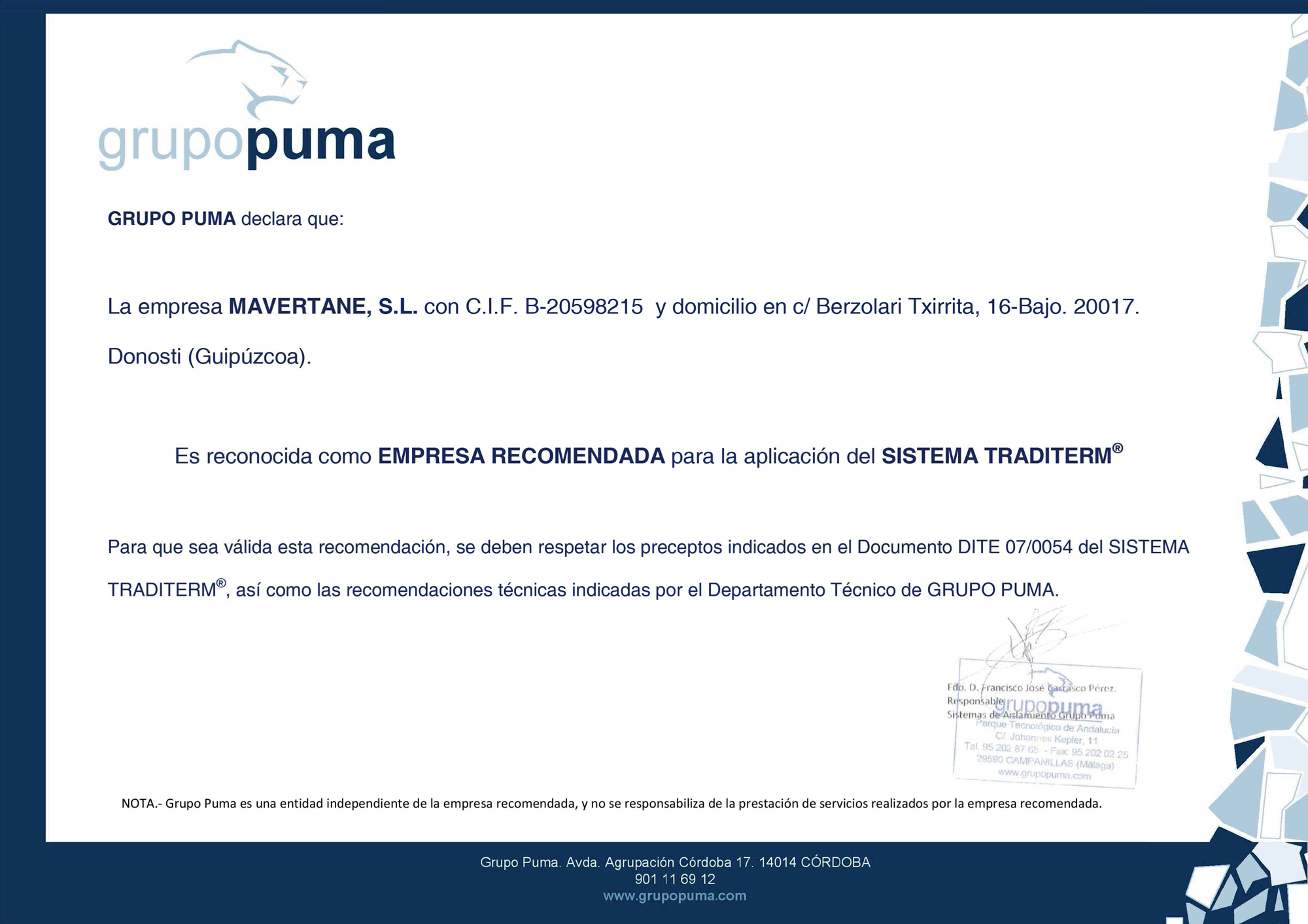 En Mavertane primamos la calidad de los materiales y de los sistemas que colocamos en las fachadas, siendo aplicadores oficiales en Gipuzkoa de tres proveedores: BEISSIER, BAUMIT y PUMA, marcas líderes en su sector, para proporcionar a nuestros clientes la tranquilidad de saber que están dejando sus viviendas en manos expertas.